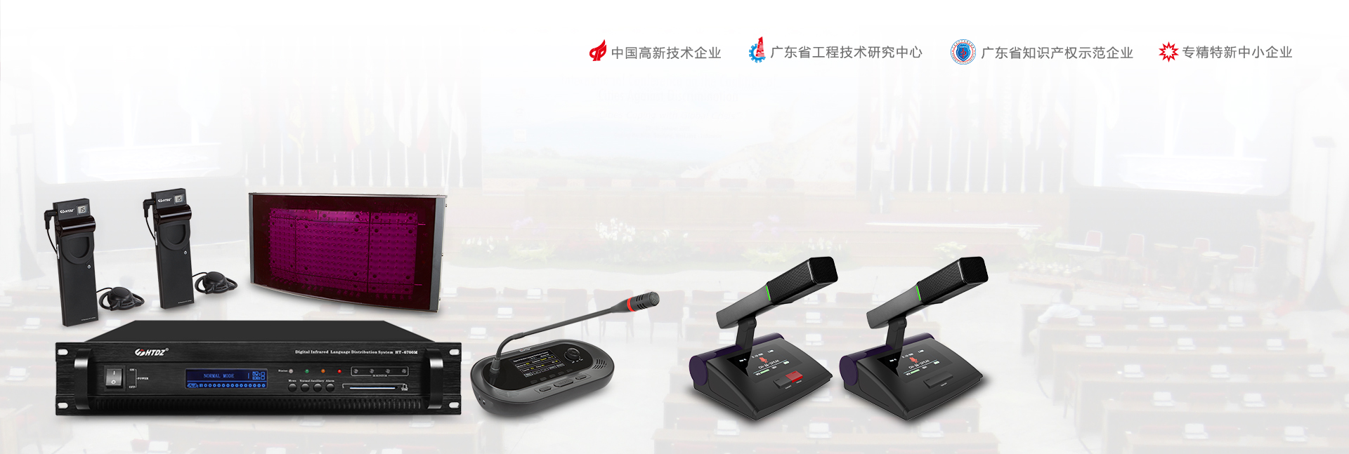 紅外線會議系統 紅外線同聲傳譯系統 無紙化會議系統 觸摸屏/視頻會議系統 電子桌牌 無線數字表決系統 有線數字表決系統 多功能數字會議系統 輕便式會議系統 自動跟蹤視像系統